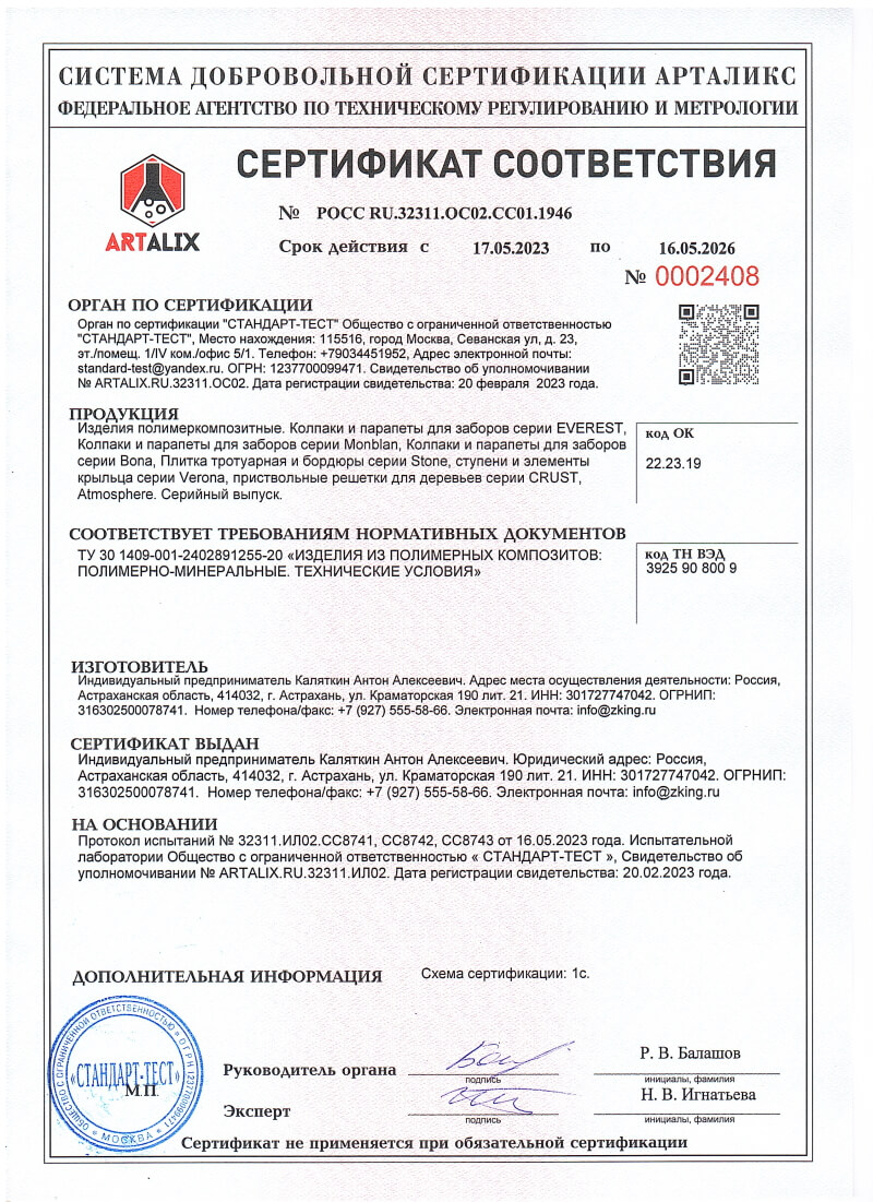 Сертификаты соответствия ZKING для Арзамаса